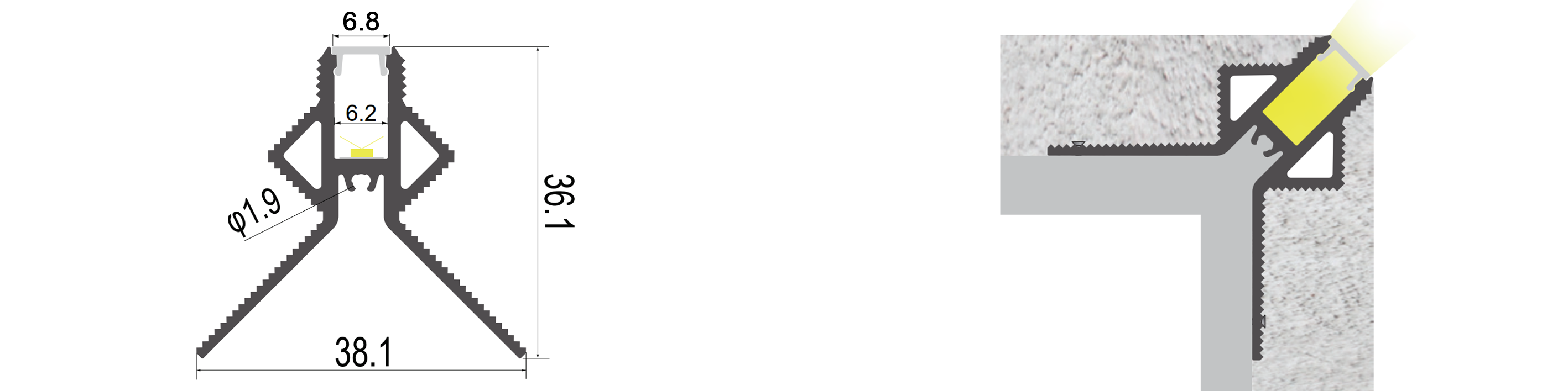 2M External Corner Trimless Aluminium Profile