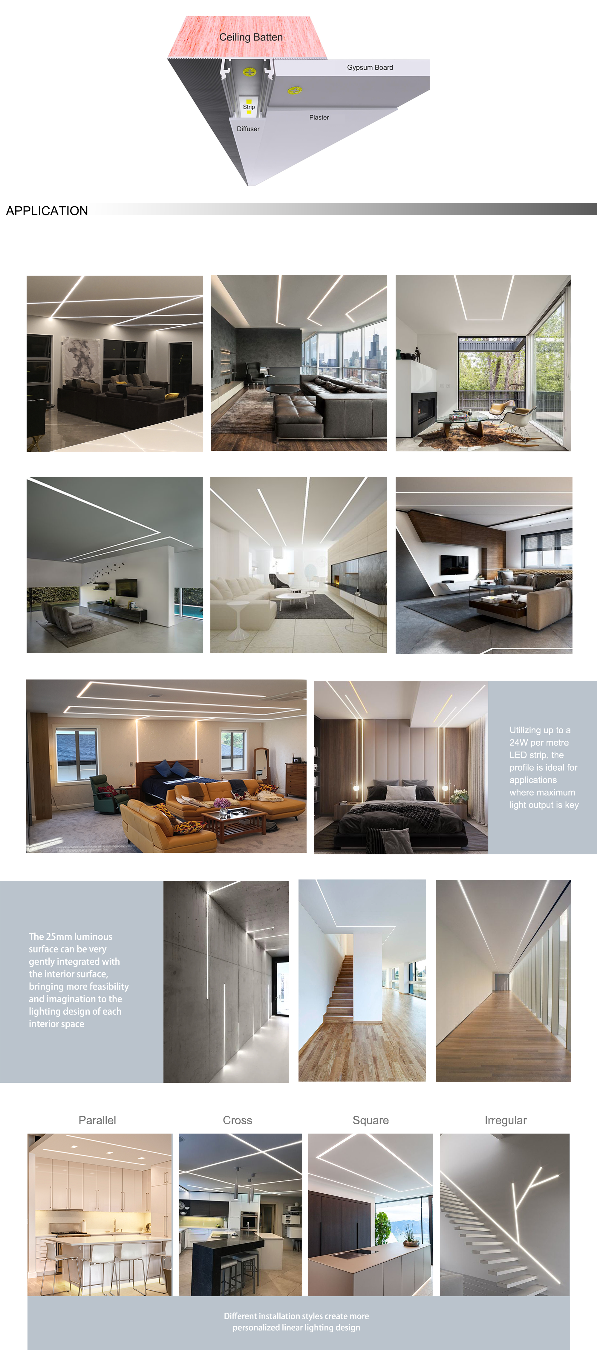 25mm luminous surface, trim-less recessed design, integrated into the architecture