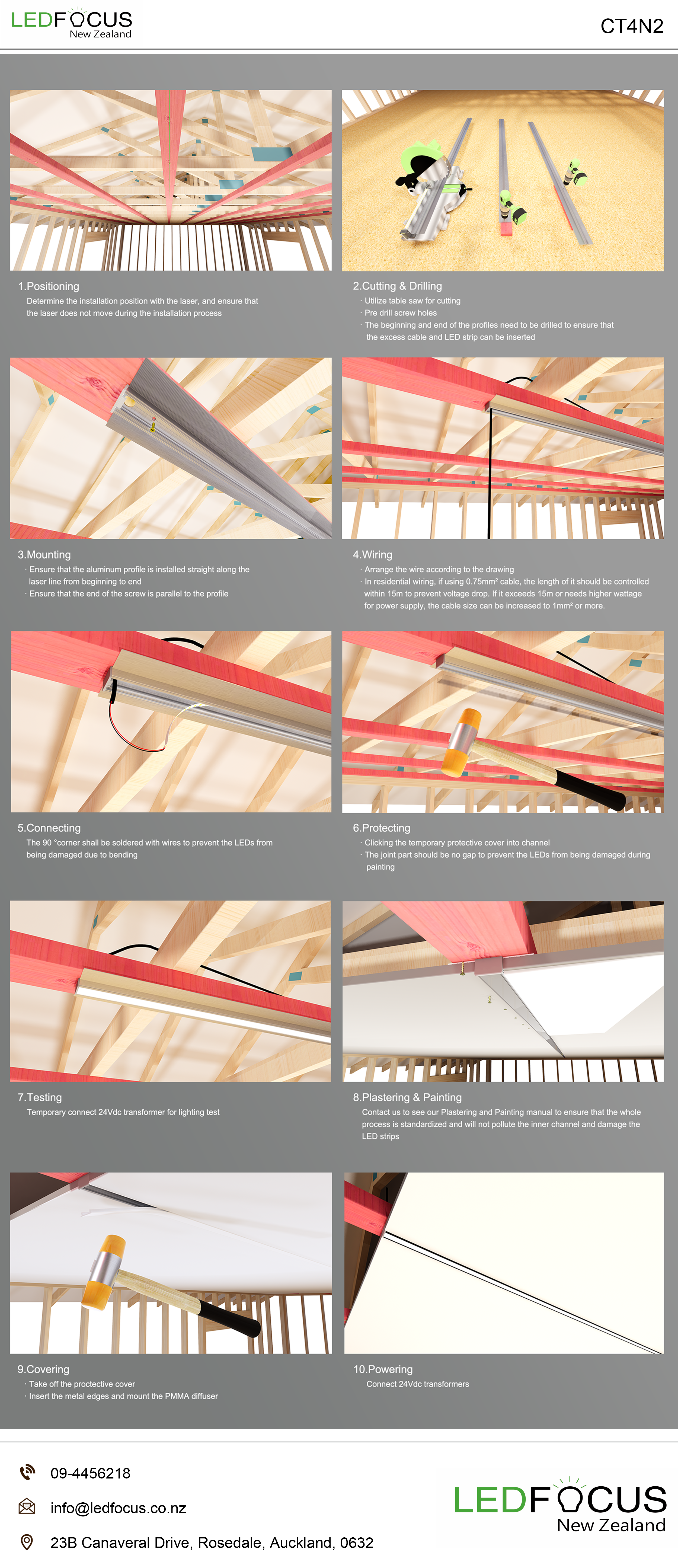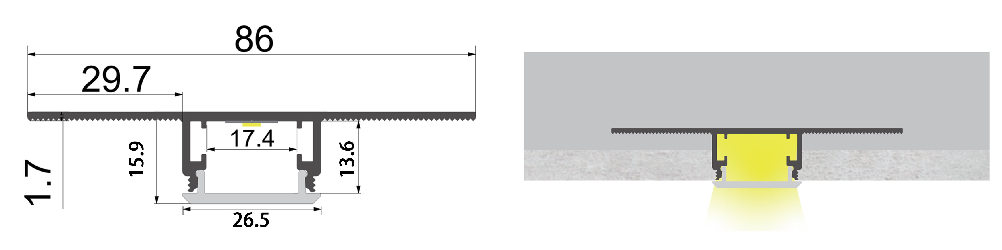 Trimless Aluminium Extrusions for recessing into plasterboard walls and ceilings for a completely seamless look