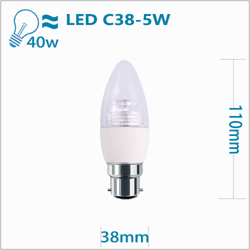 Our 5 Watt B22 candle bulbs feature High Power SMD LEDs (highest quality chip) with a clear glass cover which is giving out a great 500 Lumens. They are aesthetically and intelligently designed to significantly reduce energy consumption by up to 80% and deliver long life performance: matching and incredible maintenance free 25,000 hours of use.